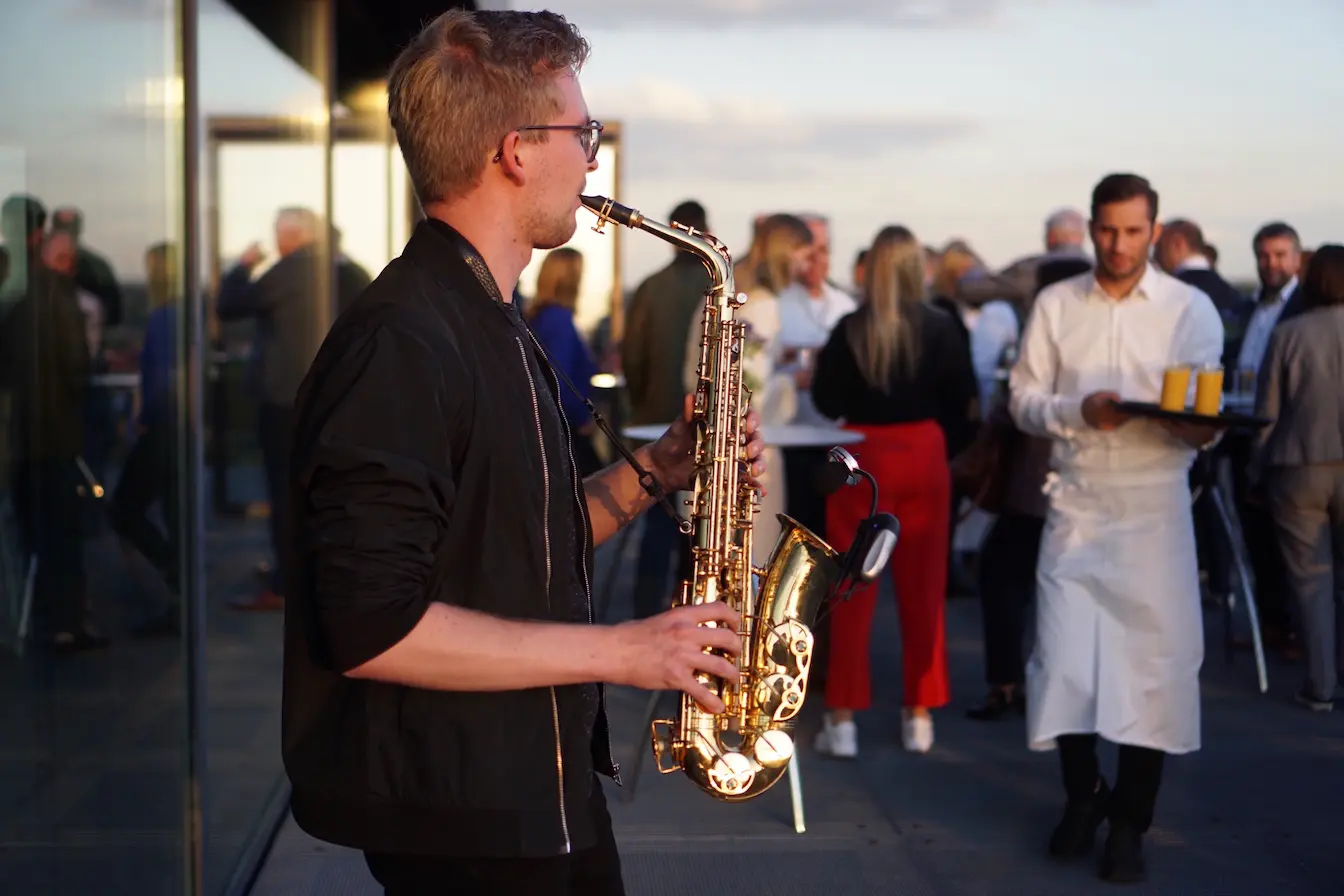 Gerne kann unser Sänger mit Piano die Trauung musikalisch begleiten, unser Saxophonist schon Solo beim Sektempfang performen, unsere Sängerin mit Gitarre beim Dinner spielen und anschließend die gesamte Band mit dem Hochzeitstanz den Abend einläuten, die Party richtig starten lassen und für Abriss sorgen – bis in die Morgenstunden, auf Wunsch auch im Wechsel mit einem DJ. Die Kombination Coverband, DJ und Live-Saxophonist bietet jeder Hochzeit die passende Atmosphäre.