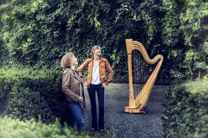 Wir – Liene Krole und Helene Schütz – freuen uns darauf, Ihrem Fest durch Livemusik etwas Einzigartiges zu verleihen, an das Sie und Ihre Gäste noch lange zurückdenken werden. Während der Zeremonie oder als Umrahmung Ihrer Feier, gerne spielen wir für Sie Ihre Lieblingsmusik. Mit unserem umfangreichen Repertoire für Flöte & Harfe sind wir in unterschiedlichen Genres zu Hause, ob Tango, Pop, berührende Filmmusik oder altbewährte Klassiker. Kontaktieren Sie uns, damit wir ihrem Fest einen einzigartigen, individuellen klanglichen Rahmen verleihen können. Bereits während unseres Musikstudiums musizierten wir gemeinsam als Stipendiatinnen der Stiftung „Villa Musica“, woraus unsere intensive Liebe zur Kammermusik und Zusammenarbeit als Duo entstand. Seither sind wir in unterschiedlichen musikalischen Besetzungen und Stilrichtungen unterwegs, finden uns aber immer wieder als Duo „ArcEnCiel“ zusammen: hier gilt unsere Leidenschaft ganz besonders den Werken des musikalischen Impressionismus und dessen klanglicher Vielfalt, die so farbenreich ist, wie der namensgebende Regenbogen (franz. arc en ciel).