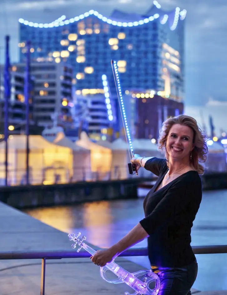 virtuosen, herzerfüllenden, emotionalen Programm. Von Klassik über Musical bis Pop. Mit • normaler, schöner Holzgeige • E-Geige oder einer super LED-E-Geige, blau leuchtend. Sehr toller Hingucker! Solistisch oder mit Playback oder auch mit DJ und Lichtshow sowie Nebelmaschine.