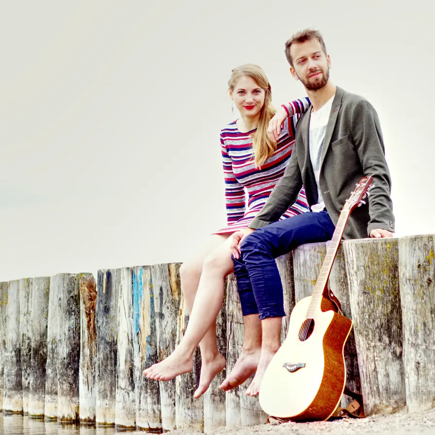 Wir, Sabrina und Jonas, kreieren als Duo Barfuß sowohl für eure Hochzeit als auch für sonstige Events das passende musikalische Gewand. So erfüllen wir euch z.B. für eure Trauung bis zu zwei Songwünsche und begleiten eure Hochzeit bei Bedarf auch gerne noch mit einer Fülle an Songs aus unserem geschmackvollen Repertoire für den weiteren Verlauf eures Tages. Mit dabei haben wir dafür unsere portable und sehr gut klingende Anlage, über die während unserer Spielpausen eine zusammengestellte Playlist abläuft. Zum Kennenlernen und für Detailabsprachen treffen wir uns gerne vorher mit euch entweder per Videokonferenz oder in echter Farbe. Wir sind jedoch nicht nur auf Hochzeiten unterwegs: Aus einer Kombination von verschmelzendem zweistimmigen Gesang, einer dezenten bis groovigen Gitarrenbegleitung sowie einem abrundendem Melodika- und Glockenspiel sorgen wir auch z.B. auf Geburtstags- oder Firmenfeiern für vorder- oder hintergründigen Musikgenuss. Ein Musikgenuss, der sich in der Bedeutung unseres Duonamens widerspiegelt.