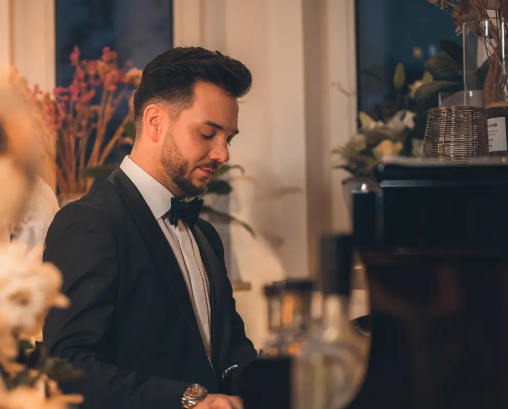 Smart, symphatisch und eine Stimme die berührt! Seit über 15 Jahren ist Dominik auf den Bühnen Europas unterwegs. Eher zufällig entdeckte er seine Liebe zum Gesang und die Fähigkeit, diese Emotion ebenso auf die Zuhörer zu übertragen und begeistert so sein Publikum immer wieder aufs Neue. Sei es als gefühlvoller Solokünstler am Klavier, im harmonischen Duo mit einem talentierten Gitarristen oder mit einer erweiterten Bandbesetzung, die für jede Veranstaltung die perfekte Note trifft – Dominik steht für höchste Qualität und Ansprüche. Sein Auftritt ist geprägt von Authentizität und Nahbarkeit, und obwohl er bereits viele Erfolge als Sänger und Songwriter feiern durfte, bleibt er herzlich und bodenständig. So vertrat er beispielsweise bereits mit prominenten Künstlern Deutschland beim ESC Vorentscheid, war als Solokünstler bereits mehrmals im TV zu sehen oder schrieb gemeinsam mit bekannten deutschen Acts Titel, die Millionen von Streams verzeichnen dürfen. Mit Charme und Leidenschaft für die Musik ist er die ideale Wahl für Veranstaltungen, die einen unvergesslichen musikalischen Touch benötigen.