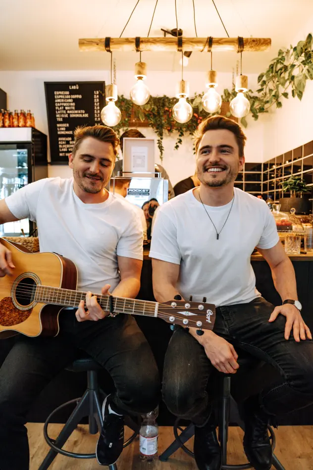 Was auch immer ihr vorhabt – Überrascht eure Gäste mit einem besonderen Zwillingsauftritt. Das macht uns aus: aktuelle Songs, mehrstimmige Harmonien, einfache Abläufe und gleiches Aussehen.