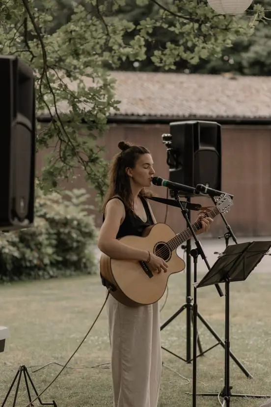 Hi, ich bin Ana Pipecreek und Singer/Songwriterin in Köln. Ich widme der Musik den größten Teil meiner Zeit und verstehe dies als Privileg. Zu erleben, wie die Atmosphäre von Events und Momenten durch Live-Musik bereichert und belebt wird, macht mich stolz und glücklich. Und bei solch besonderen Anlässen, wie einer Hochzeit bzw. Trauung, ist das Gefühl noch um einiges stärker. Menschen dabei zu begleiten, wie sie sich gegenseitig ihre Liebe schenken und sie zusammen feiern, ist für mich der schönste Rahmen, um Musik zu spielen. So nehme ich die Emotionen und die Stimmung der Hochzeitsgesellschaft auf und gebe sie, in Musik übersetzt, wieder zurück. Meine Live-Musik besteht aus Gesang und Akustik-Gitarre und ist somit einfach gehalten, pur und authentisch. Sie nutzt keine Effekte, ist ehrlich und möchte der Atmosphäre eine natürliche Tiefe verleihen. Mein Repertoire beinhaltet eine kleine musikalische Zeitreise von den 60s, über die 90s, hin zu aktuellen Hits, die alle als stilvoll emotionale Akustik-Cover interpretiert sind. Habt ihr – das Brautpaar – Lieder, die für eure Liebe stehen oder die an eurer Trauung nicht fehlen dürfen, kann ich diese euren Wünschen gemäß interpretieren und anpassen (Rhythmus, Stimmung, Text), damit sie auch wirklich zu euren Liedern werden.