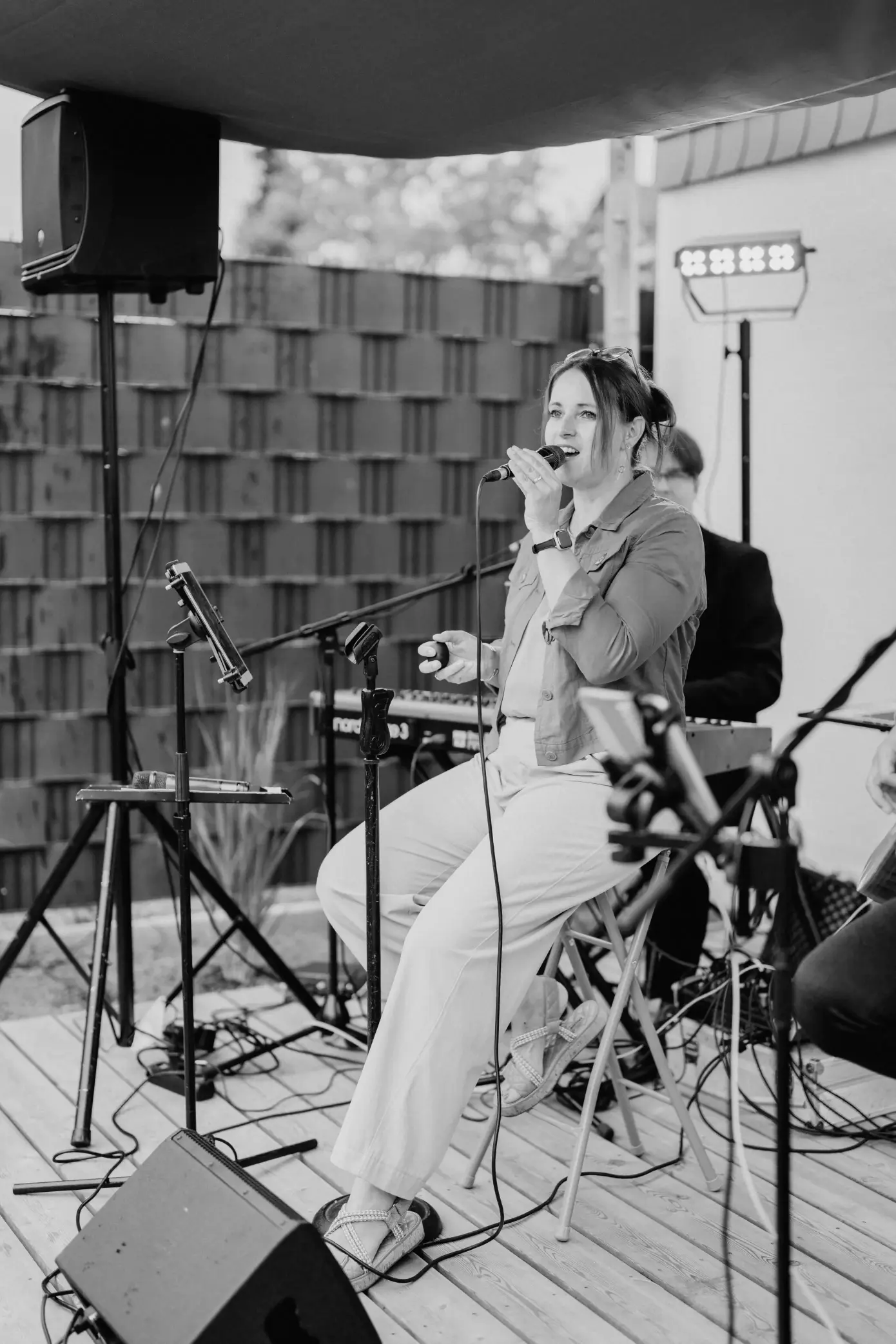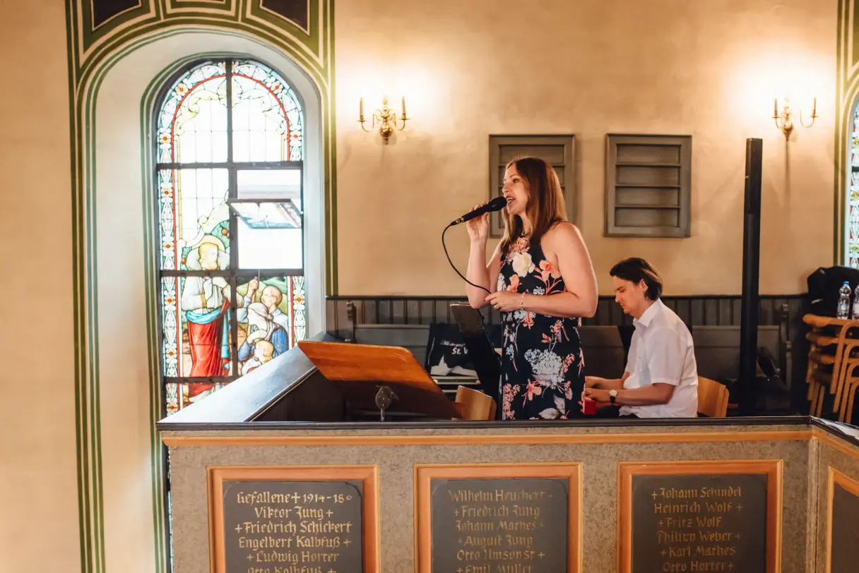 Hallo, ich bin Ully und gestalte gerne solo oder zusammen mit meinen erfahrenen Musikern Euren großen Tag. Ich singe seit vielen Jahren auf Hochzeiten und liebe es, immer wieder neue Menschen kennenzulernen und ihnen durch meine Stimme, aber auch mein Know-How, sei es technisch, oder eventgestalterisch ihren Tag zu verschönern. Dabei ist mir eine entspannte Atmosphäre wichtig aber auch eine indivuduelle Beratung und schnelle Erreichbarkeit für Rückfragen. Fast alle musikalischen Wünsche können umgesetzt werden, da mein Mann als Pianist und Songwriter die Songs nach Euren Wünschen arrangieren kann, auch wenn das Original ein Rock- oder Disco-Song ist, kann es trauzeromonie-tauglich umgesetezt werden. Egal ob Kirche oder freie Trauung, Sektempfang oder abendliche Party können wir vom Duo bis zur großen Live-Band + DJ fast alle Wünsche erfüllen. Wir würden uns freuen, mehr über Eure musikalsichen Vorstellungen zu erfahren. Ully & Band
