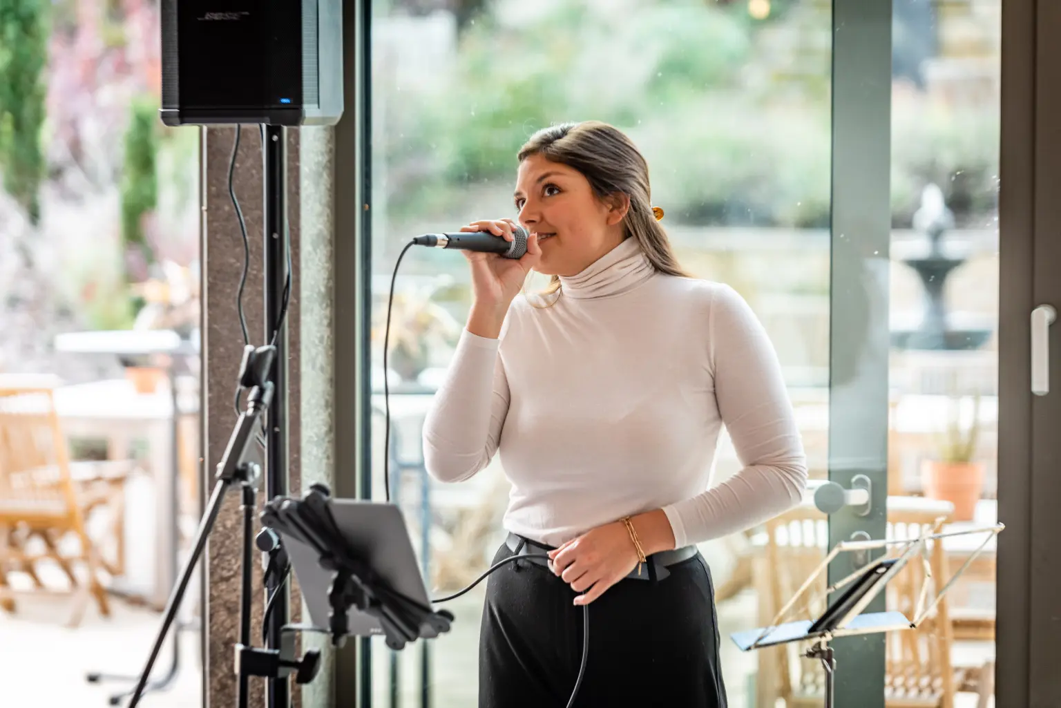 Mein Name ist Mara Baumann, ich komme aus dem Main-Tauber-Kreis und würde mich geehrt fühlen, auf Eurer Traumhochzeit singen zu dürfen. Gefühlvoller Gesang inkl. persönliche Wünsche bezüglich des Auftritts, sollen Euren Tag ergänzen und zu etwas ganz Besonderem machen. Fragt mich gerne auch für Taufen und Trauerfeiern oder beispielsweise Firmenfeiern, Geburtstage, etc. an. Ich freue mich auf Euch.